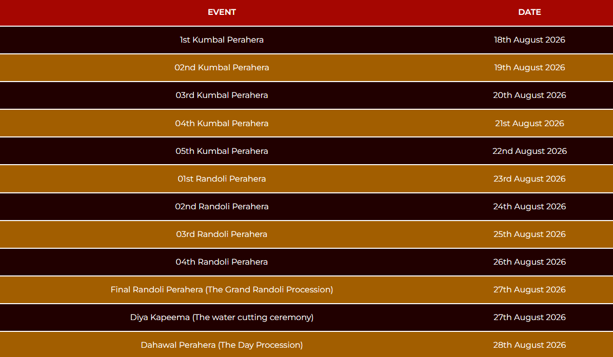 Final Randoli Perahera (The Grand Randoli Procession): 27th August 2026